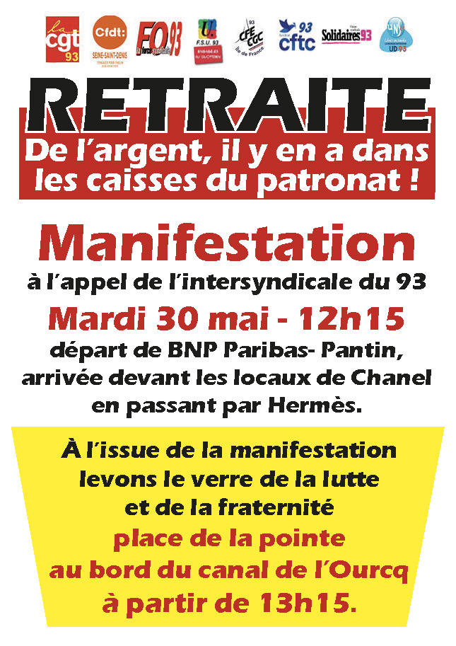 Manifestation à l’appel de l’intersyndicale du 93 mardi 30 mai
