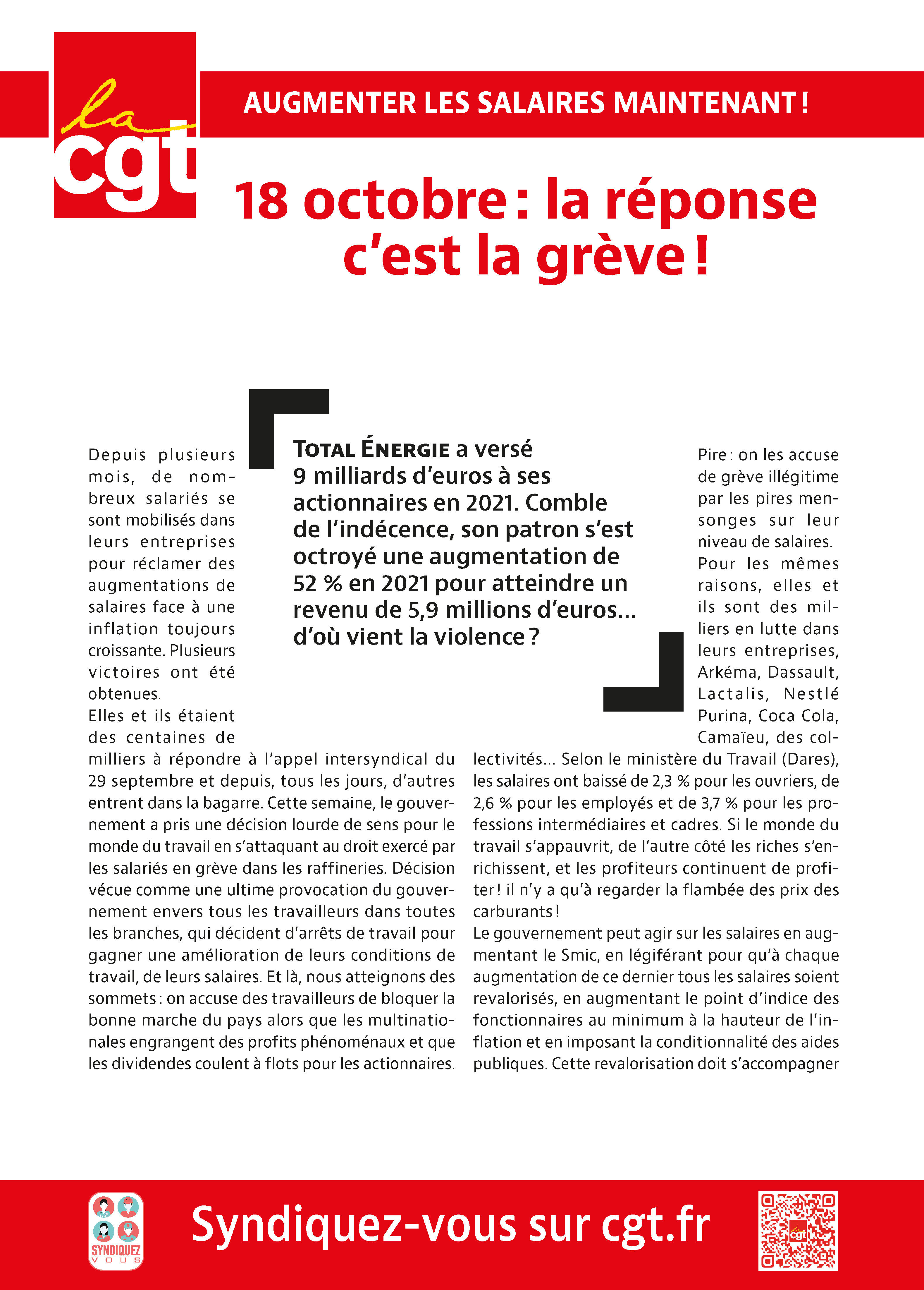 Que ce soit dans les raffineries, l’agroalimentaire, les crèches, les transports publics, l’énergie et nucléaire, les organismes sociaux, les banque-assurances, les services informatiques, la maintenance industrielle, l’éducation, la santé, le commerce, la métallurgie… les salarié.e.s de très nombreux secteurs professionnels se mobilisent depuis des mois dans leurs entreprises ou leurs services pour revendiquer et gagner de légitimes augmentations de salaire, de meilleures conditions de travail, des emplois de qualité.